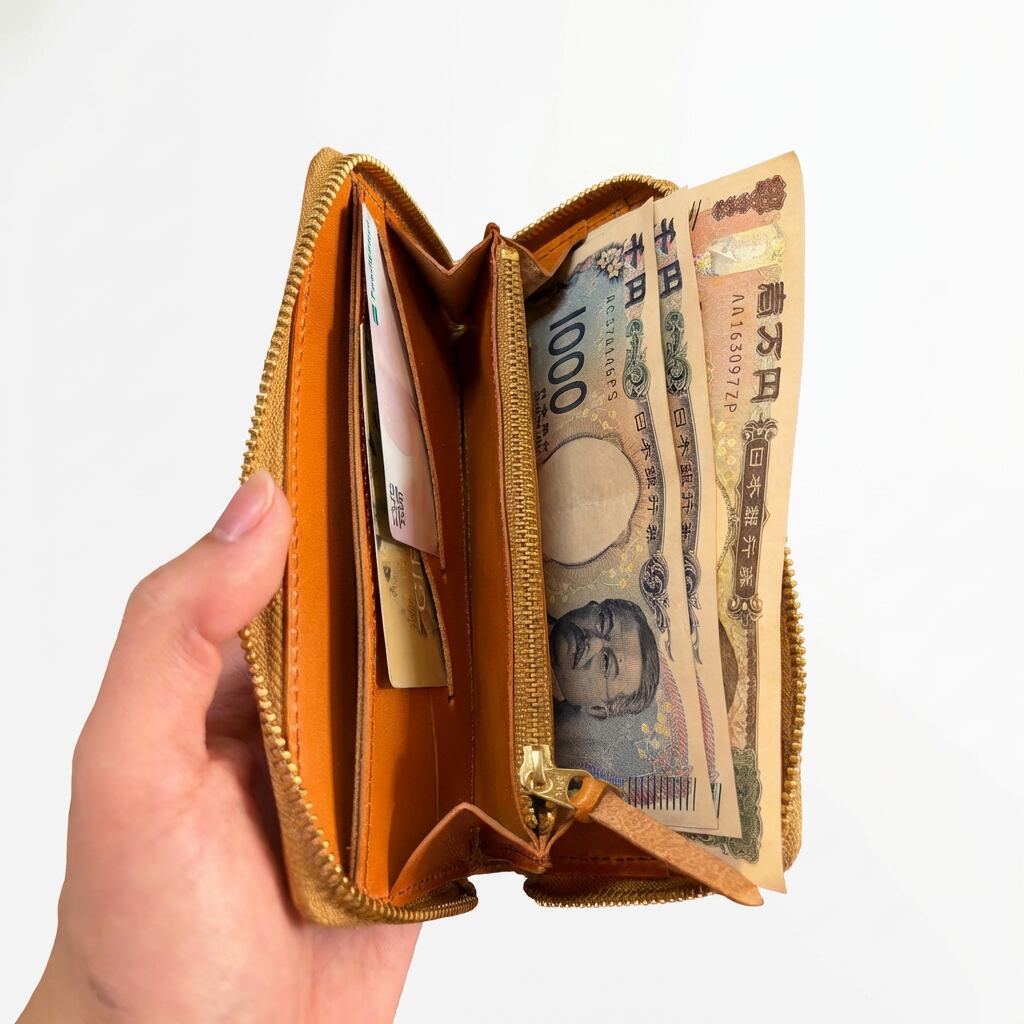 小銭入れは大きく開いて中身が見やすく、しっかり収納可能。
